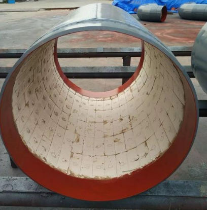 貼片陶瓷復(fù)合管該管是用耐高溫強力粘膠將氧化鋁陶瓷片粘貼在管道內(nèi)壁,經(jīng)加溫固化后形成牢固防磨層。該種產(chǎn)品制作工藝相對簡單,制作周期短,成本相對較低。把陶瓷片用高溫耐磨膠粘貼到鋼管道上,起到耐磨的作用,管道一般為白色。一般用于大口徑的管道。陶瓷貼片耐磨管道耐磨性好(比自蔓燃),使用壽命長。